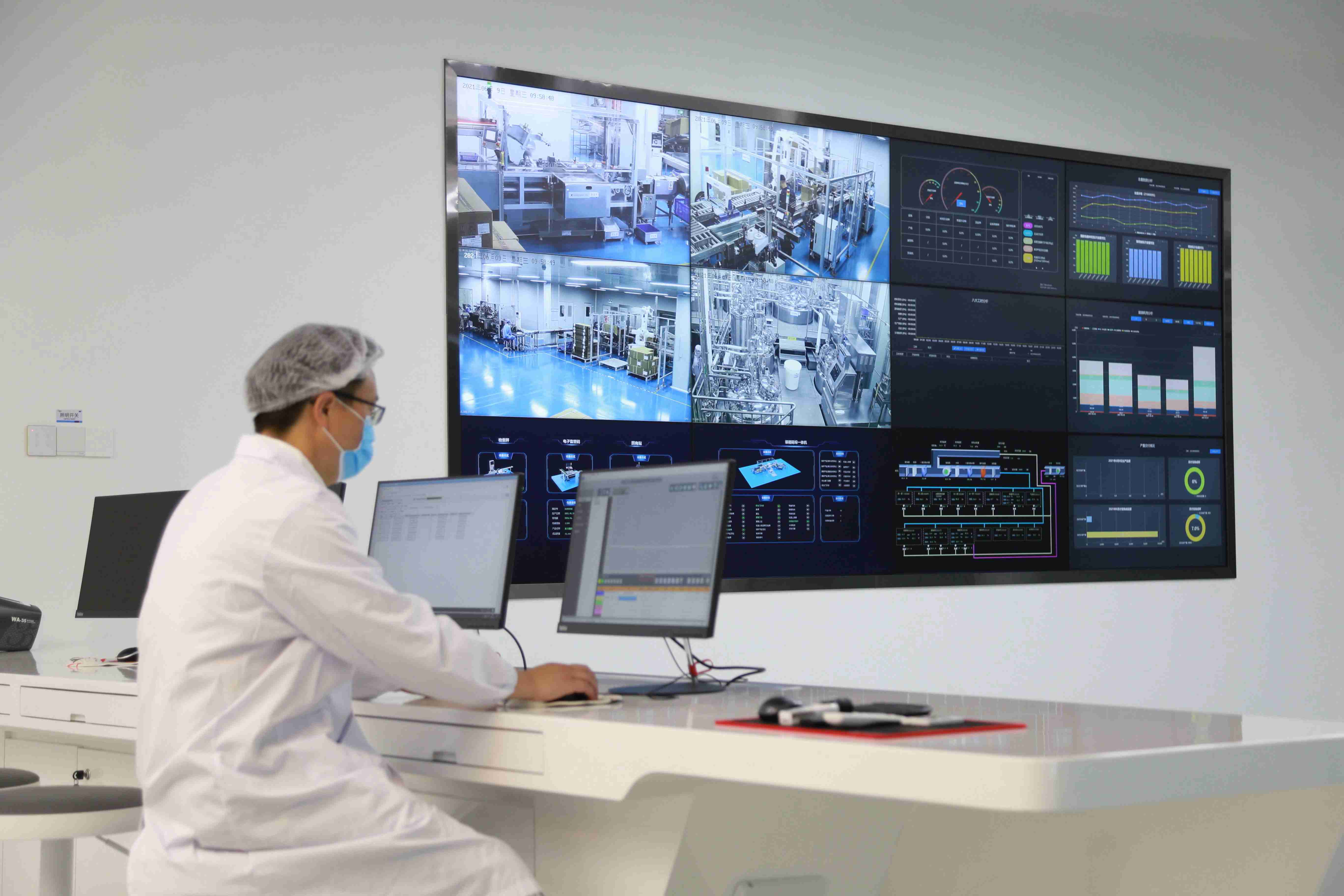 ×ß½øÐ±¦gg´´ÔìÆæ¼£¹ÛÀ½Éú²ú»ùµØµÄÖÇÄÜÖÆÔìÖпØÖÐÐÄ£¬¼ÇÕß´Ó¼à¿Ø´óÆÁ¿´µ½£¬×Ô¶¯»¯Éú²ú×°±¸ÅÅÁÐÓÐÐò£¬¸ßЧÔËת£»º£ÄÚÇå½àÇøÊ×ÌõAGVÔËÊäÏßÍù·µ´©Ëó£¬ÖÖÖÖÖÊÁÏÔ´Ô´Ò»Ö±±»Ô˻أ»Ù¼´óµÄÖÆÒ©³µ¼ä£¬ÏÕЩ¿´²»µ½¹¤ÈË¡£