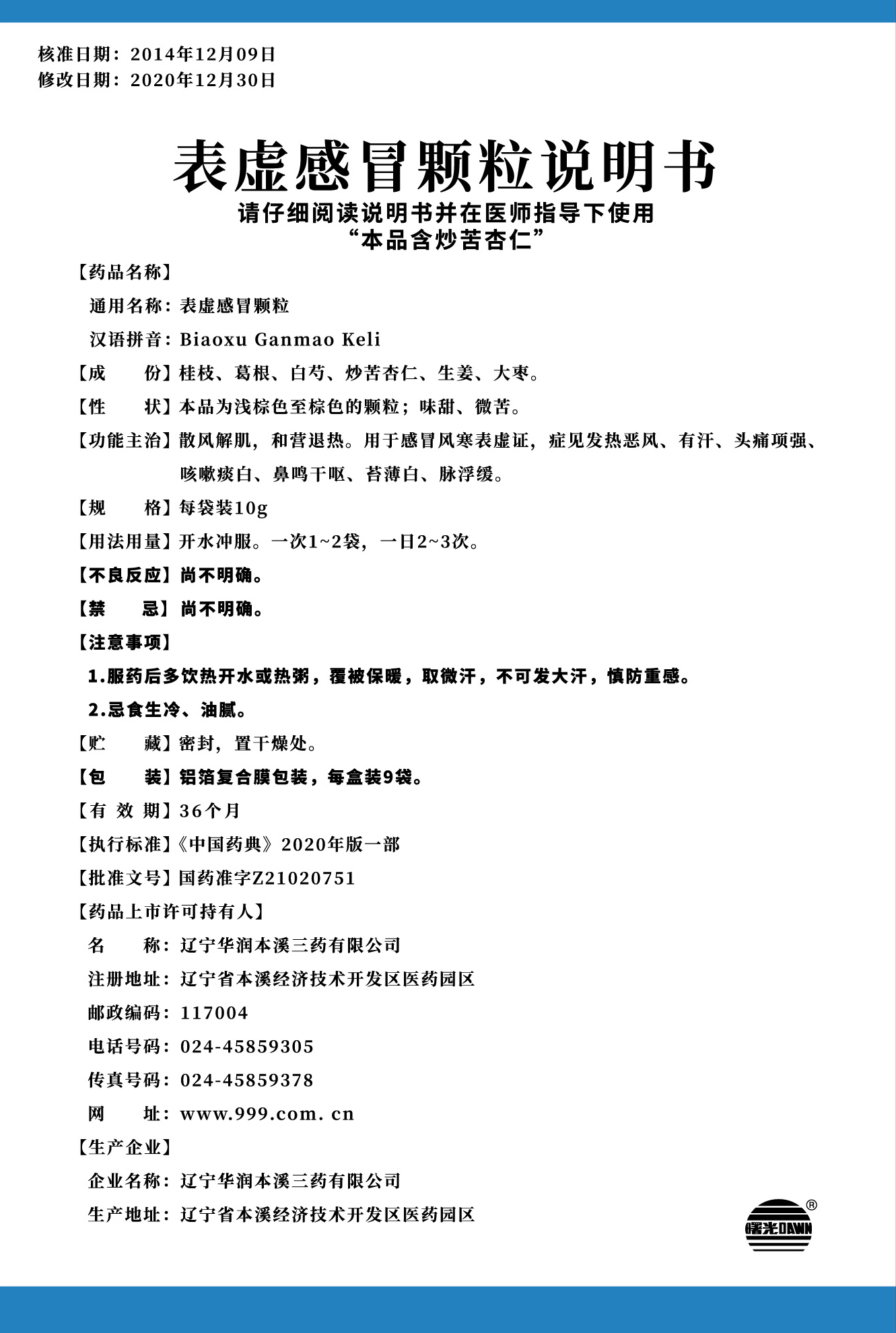 以上说明书为国家药品监视管理局批准的最新版本。